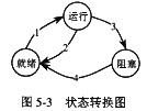 某系统的进程状态转换如图5-3所示,图中1、2、3和4分别表示引起状态转换的不同原因,原因4表示(13);一个进程状态转换会引起另一个进程状态转换的是(14)。
