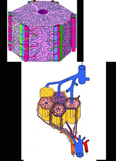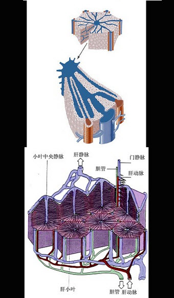 B .肝小叶为多边形棱柱体