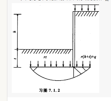 当基坑土层为软土时,应验算坑底土抗隆起稳定性。已知基坑开挖深度h=5m,基坑宽度较大,深宽比略而不计。支护结构如习图7.1.2,深度t=5m,坑侧地面荷载q=20kPa,土的重度γ=18kN/m3,黏聚力c=10kPa,内摩擦角=0°,不考虑地下水的影响。如果取承载力系数Nxc=5.14、Nq=1.0,则抗隆起的安全系数F应属于()的情况()