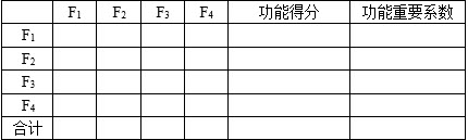 2.若四个功能之间的重要性关系排序为F2>F1>F4>F3,采用0-1评分法确定各功能的权重,并将计算结果填入下表中。
