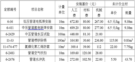 (4)Ф219×32碳钢管道工程的相关定额见下表: