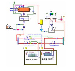 [单选题]下图是某船舶蒸气压缩式食品制冷系统简图。图中冷凝器2与贮液器5之间设置管路13的作用:()。A . 超压保护B . 便于冷剂流入贮液器C . 放不凝气体时用D . 抽空系统时用
