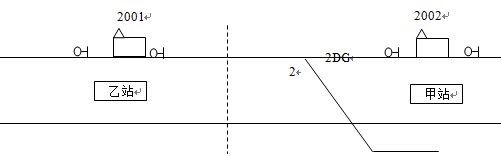 甲、乙两站(1#线)上行按超速防护闭塞法行车,2001次过后甲站上行出站信号机故障,2D.G红光带(道岔在定位),作为甲站值班员请叙述将2002次发出的作业程序,并填写甲站的《行车日志》。