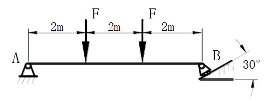 [问答题] 圆截面简支梁如图所示,已知F=1KN,回答下列问题。 计算梁A、B端的约束反力。