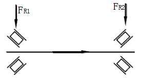 齿轮轴由一对圆锥滚子轴承“面对面”支承。轴向载荷Fa=2200N,径向载荷FR1=5400N、FR2=3600N,方向如图所示。试计算两轴承承受的轴向载荷。派生轴向力FS=FR/2Y,Y=0.9。