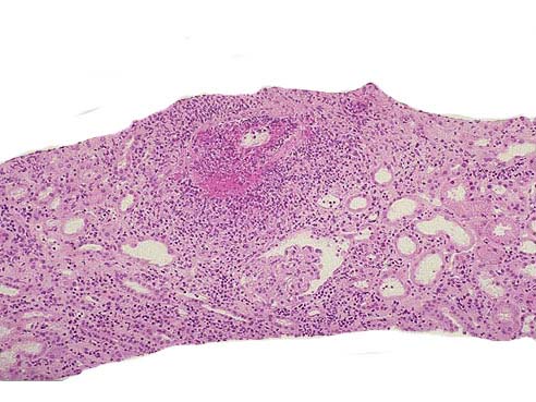 [单选题]韦格氏肉芽肿患者病变部位镜下可出现如图所示改变,下列关于该病说法错误的是()A . 30~50岁多见,男性略多B . 在动脉壁、动脉周围或血管外部区域出现肉芽肿炎症C . 多数患者出现不同程度的肾小球肾炎D . 肾脏病变常为局灶坏死性肾小球肾炎伴新月体形成E . 严重者可引起急性肾功能衰竭