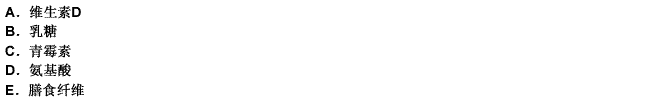 [单选题,B1型题] 促进钙吸收的物质()A . 乳糖B . 维生素CC . 膳食纤维D . 维生素EE . 硒