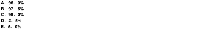 [单选题,A1型题] 已知t0.05,18=2.101(双侧),则区间(-2.101,+2.101)与曲线所围面积是()A . 95.0%B . 97.5%C . 99.0%D . 2.5%E . 5.0%