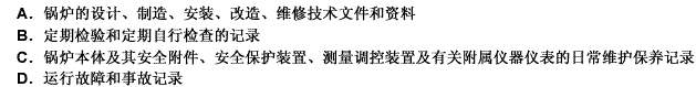 [单选题]锅炉使用单位应当建立锅炉安全技术档案,档案的内容应当包括( )等。A.锅炉的设计、制造、安装、改造、维修技术文件和资料B.定期检验和定期自行检查的记录C.锅炉本体及其安全附件、安全保护装置、测量调控装置及有关附属仪器仪表的日常维护保养记录D.运行故障和事故记录