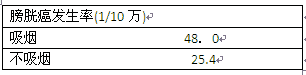 在某地区进行男性吸烟与膀胱癌关系的队列研究结果如下