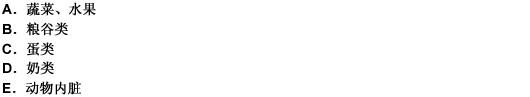 [单选题]某女,20岁,血红蛋白10.9g/100ml,应注意增加哪些食物的摄入()。A . 蔬菜、水果B . 粮谷类C . 蛋类D . 奶类E . 动物内脏