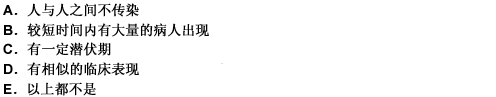 [单选题,A2型题,A1/A2型题] 食物中毒与流行性传染病的根本区别在于()。A . 人与人之间有无传染性B . 较短时间内有大量的病人出现C . 有一定潜伏期D . 有相似的临床表现E . 有无体温升高