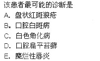 [单选题]下列试题共用题干,回答 148~151 题。男性患者,36岁,外伤术后,目前正在接受抗生素治疗,发现近几天味觉减退,口腔黏膜干燥并有灼痛,舌背黏膜充血发红,舌乳头萎缩明显。第 148 题