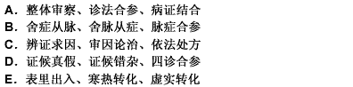 [单选题]中医诊断学的三大原则是()A . 证候真假、证候错杂、四诊合参B . 舍症从脉、舍脉从症、脉症合参C . 辨证求因、审因论治、依法处方D . 整体审察、诸诊合参、病证结合E . 表里出入、寒热转化、虚实转化