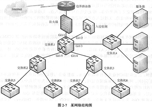 [试题]某网络结构如图5所示,请回答以下有关问题。(1)设备1应选用哪种网络设备?(2)若对整个网络实施保护,防火墙应加在图中位置1~位置3的哪个位置上?(3)如果采用了入侵检测设备对进出网络的流量进行检测,并且探测器是在交换机1上通过端口镜像方式获得流量。下面是通过相关命令显示的镜像设置的信息。请问探测器应该连接在交换机1的哪个端口上?除了流量镜像方式外,还可以采用什么方式来部署入侵检测探测器?(4)使用IP地址 202.113.10.128/25划分4个相同大小的子网,每个子网中能够容纳30
