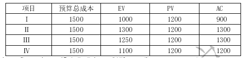 [单选题]项目Ⅰ、Ⅱ、Ⅲ、Ⅳ的工期都是三年,在第二年末其挣值分析数据如下表所示,按照趋势最早完工的应是项目()。A . ⅠB . ⅡC . ⅢD . Ⅳ