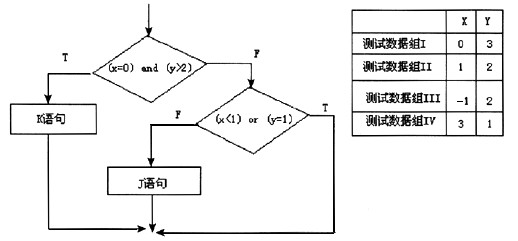 为了对下图所示的程序进行覆盖测试,必须适当地选取测试数据。若X,Y是两个变量,可供选择的测试数据组共有Ⅰ,Ⅱ,Ⅲ,Ⅳ四组(如表中给出),则实现语句覆盖至少应采用的测试数据组是(6);实现条件覆盖至少应采用的测试数据组是(7);实现路径覆盖至少应采用的测试数据组是(8)。
