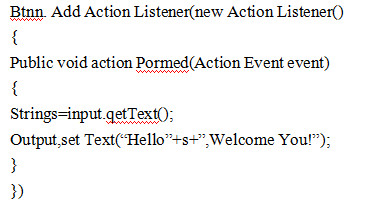 [单选题]下列内部类的正确用途是 btnn.addActionListener(new //注册监听器 ActionListener() { public void actionPerformed(ActionEvent event) { String s=input.getText(); output.setText("Hello"+s+",Welcome You!"); } });A.用于访问外部类的数据B.用于进行事件处理C.隐藏起来不被同一包中的其他类所见D.生成事件适配器