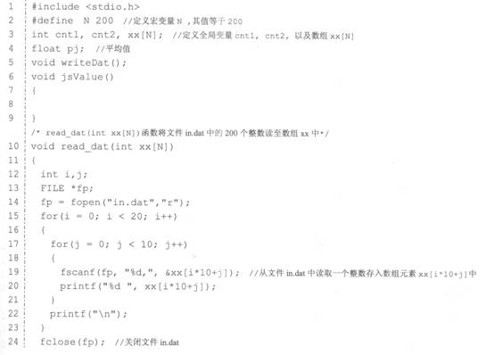 将文件in.dat中的200个整数读至数组XX中。请编制js Vralue函数,要求:求出数组XX中的数值为奇数的个数cnt1和数值为偶数的个数cnt2以及数组xx下标为偶数(包括下标为0的元素)的元素值的算术平均值pj。 结果cnt1,cnt2,pJ输出到out.dat中。注意:部分源程序存在test.c文件中。请勿改动数据文件in.dat中的任何数据、主函数main、读函数readdat和输出函数writeDatj的内容。