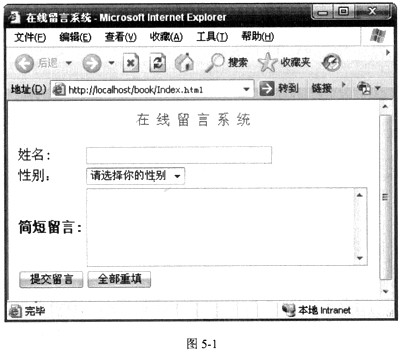 以下是用ASP实现的一个留言系统。用IE打开网页文件index.html后的效果如图5-1所示。
