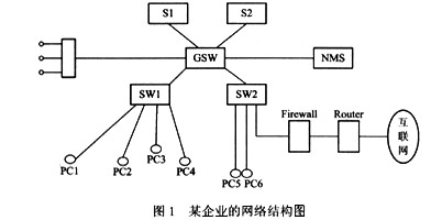 阅读图1所示的某企业的网络结构图,分析网络结构,回答(问题1)~(问题3),将解答填在横线上。