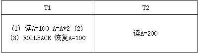 [单选题]( 48 )设有两个事务 T1 、 T2 ,其并发操作如下所示。下列说法中正确的是----------------------------------------------------T1 T2----------------------------------------------------------------------------( 1 )读 A=100A.=A*2( 2 ) 读 A=200( 3 ) ROLLBACK恢复 A=100-----------------------