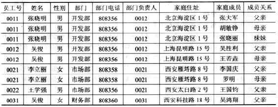 [单选题]假设员工关系EMP(员工号,姓名,部门,部门电话,部门负责人,家庭住址,家庭成员,成员关系)如下表所示。如果一个部门可以有多名员工,一个员工可以有多个家庭成员,那么关系EMP属于( ),且( )问题;为了解决这一问题,应该将员工关系EMP分解为( )。A.1NFB.2NFC.3NFD.BCNF