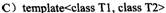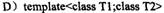 [单选题]下列对模板的声明,正确的是()。A.templateB.templateC.template