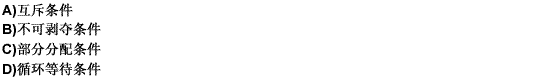 [单选题]通过破坏死锁产生的四个必要条件的方法之一是采用资源有序分配法,它是破坏了下列哪一个条件( )。A.互斥条件B.不可剥夺条件C.部分分配条件D.循环等待条件