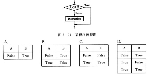 [单选题]如上图所示实例,以下测试用例哪一组能够满足判定条件覆盖______。A.) (a=2,b=0,x=6)、(a=1,b=1,x=1)B.) (a=8,b=7,x=114)、(a=33,b=50,x=32)C.) (a=29,b=20,x=25)、(a=3,b=9,x=36)D.) (a=21,b=20,x=62)、(a=22,b=40,x=24)A.B.C.D.