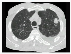 [单选题]女,55岁,胸痛伴咯血丝痰一周,胸部CT如图,最可能的诊断为()A . 转移性肺癌B . 左侧周围型肺癌并肺内转移C . 左侧中央型肺癌并肺内转移D . 多发性肺脓肿E . 结节病