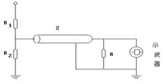 计算题:如图是测量冲击电压的电阻分压器,已知测量电缆的波阻抗为1000Ω,设待测冲击电压的幅值为70KV,电阻分压器高压臂电阻R1为8000Ω,示波器输出电压不大于400V试求分压器低压臂电阻R2的数值。