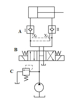 根据图示液压回路分析说明:液压阀A、B、C的名称;该回路能实现哪几种功能?