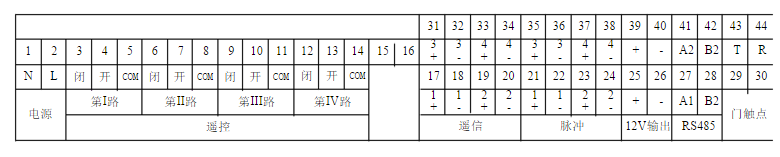 [问答题] 下图为带教材集中器辅助接线端子示意图,请标注端子名称。