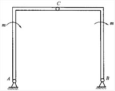 [单选题]图示三铰半圆拱结构,受两力偶m1、m2作用,该两力偶分别作用于AC和BC上,其转向相反,但大小相等。则A、B铰链处约束反力应为()。A . (0,0)B . 水平C . 水平D . 铅直