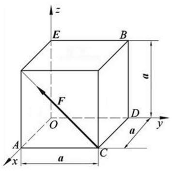 [单选题]边长为a的正方形侧面BB1C1C对角线上作用一力,则力对,,三轴之矩为()。A . B . C . D .