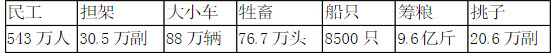 观察下列《淮海战役人民支前统计表》,它充分证明了淮海战役中()