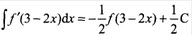 [单选题]下列各式中正确的是哪一个(c为任意常数)()?A . f′(3-2x)dx=-(1/2)f(3-2x)+cB . f′(3-2x)dx=-f(3-2x)+cC . f′(3-2x)dx=f(x)+cD . f′(3-2x)dx=(1/2)f(3-2x)+c