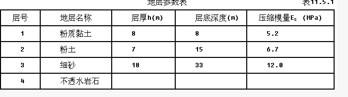 [单选题,案例分析题] 某市地下水位埋深为1.5m,由于开采地下水,水位每年下降0.5m,20年后地下水位降至11.5m,城市地层资料如下表所示。20年后,地表最终沉降值为()。A . 450mmB . 508mmC . 550mmD . 608mm