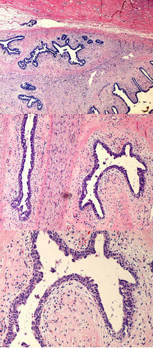 女性,26岁,左乳扪及包块,界清,活动度好,切除肿块送检,见肿瘤结节状,表面光滑,有完整的薄层纤维包膜。直径4cm,质硬有弹性,切面光泽、灰白色,有黏液感。镜下见增生扩张的腺管内衬双层上皮细胞,管腔缩小、塌陷甚至闭合(如图)。最有可能的诊断是()