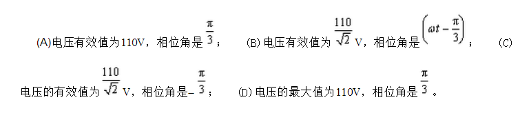 D . 电压的最大值为110V,相位角是;