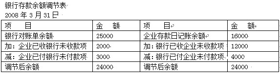 某公司于2008年3月末收到某银行转来对账单,对账单余额为25000元,公司在该银行的银行存款余额为16000元。经查,存在下列未达账项: