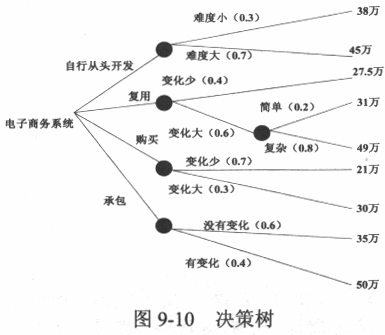 针对这几种方式,项目经理提供了如图9-10所示的决策树,根据此图,管理者选择建设方式的最佳决策是()