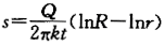 已知承压含水层的厚度t=7.5m,用完全井进行抽水试验,在半径,r1=6m、r2=24m处,测得相应的水头降落s1=0.76m、s2=0.44m,井的出流量Q=0.01m3/s,则承压含水层的渗流系数k为:()[注:
