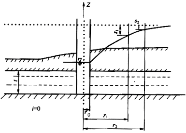 [单选题]为了确定土壤的渗透系数k值,对自流井进行抽水试验。在距井轴r1=10m和r2=20m处分别钻一个观测孔,当自流井抽水后,实测两个观测孔中水面稳定降深S