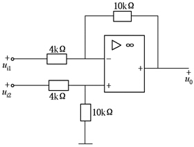 如图所示电路可进行减法运算,已知输出电压u0=12V,则两输入信号电压ui1与ui2之间的关系是()。