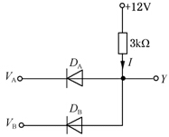 电路如图所示,设DA、DB为理想二极管,当VA=3V、VB=6V时,电流I=()mA。