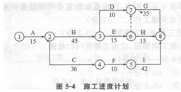 工程项目开工前,承包方按时提交了施工方案及施工进度计划(施工进度计划如图5—4所示),并获得发包方工程师的批准。