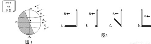 (3)该图所示太阳直射点的地理纬度是(),此日攀枝花市昼夜长短状况是(),这一天正午时刻,攀枝花市学校旗杆的影子与图2中所示最接近的是().