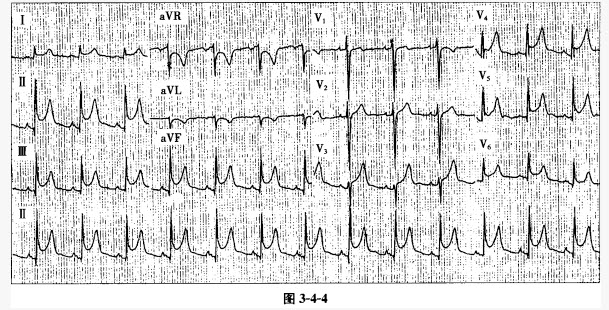 患者男性,35岁,因胸痛、咳嗽2天就诊,急查心电图如图3-4-4所示。心肌坏死标志物正常,超声心动图提示少许心包积液,临床诊断为急性心包炎。